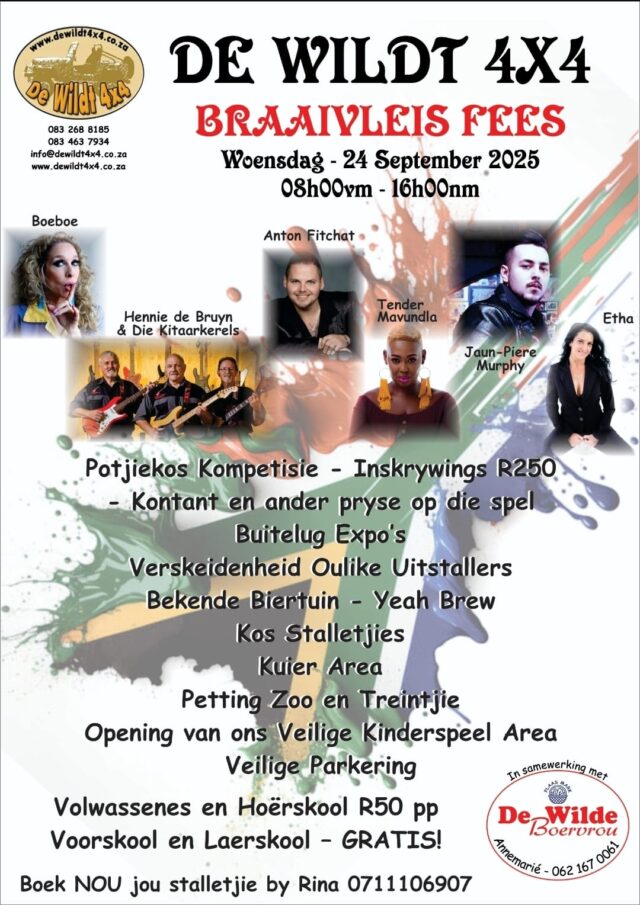 Kom geniet ‘n lekker dag saam ons, bring jou familie en vriende!!!!